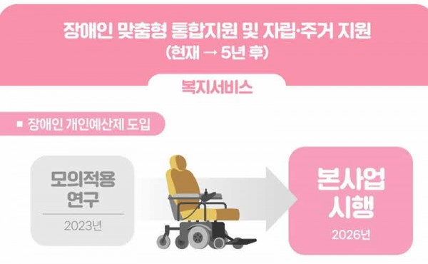 올해 모의적용 연구를 통해 개인예산제 사업 모델을 도출하고, 2024년부터 지자체 시범사업을 거쳐 2026년 본사업을 추진할 계획이다.