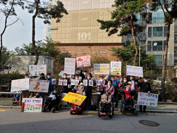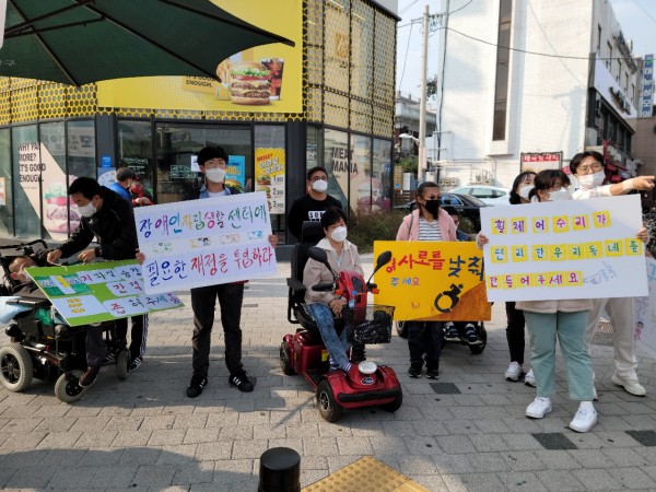 ㄴ 지난 2주간 제작한 자치구 요구안 용 피켓팅 in 중화역 사거리