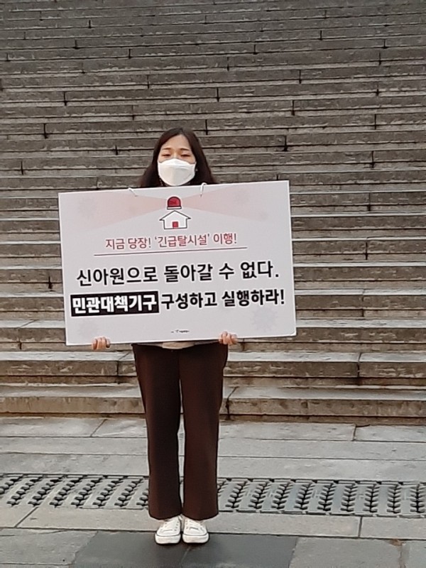 □ 제목 : 장애인거주시설 신아재활원 코로나19 집단감염 코호트 격리 중단, 긴급분산조치 촉구 해치마당 농성 25일차 주간사수