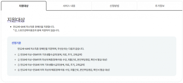 장애인스포츠강좌이용권 지원 - 복지로