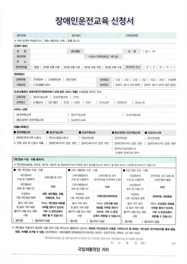 보건복지부 국립재활원 장애인 무료운전교육 안내